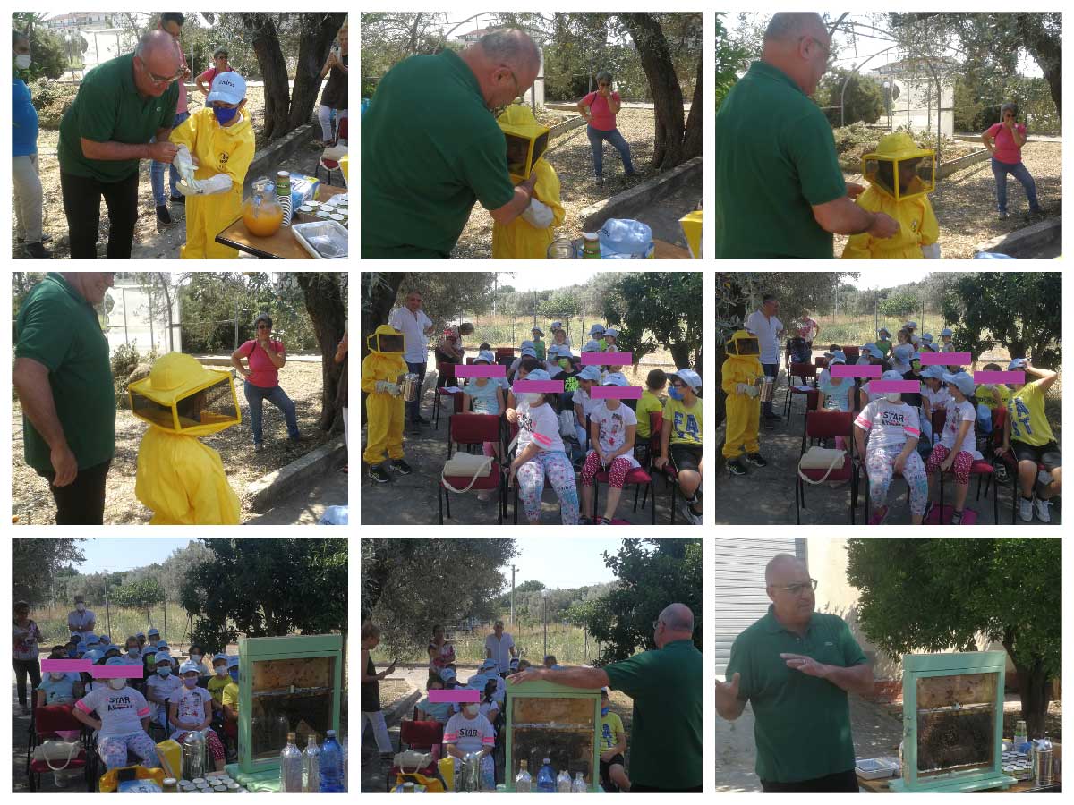 La giornata in Azienda è proseguita con una sessione a cura a dei divulgatori Alessandro Filardi e Pietro Lucente dedicata agli oli extravergini di oliva biologici prodotti in Calabria e una sessione dedicata all’apicoltura ed al miele a cura del divulgatore Arsac Giuseppe Orrico. L’esperto apicoltore, mediante l’utilizzo di un’arnia didattica, ha illustrato la gerarchia del mondo delle api facendo osservare le operaie, la regina, le celle esagonali ed il miele in esse contenute .