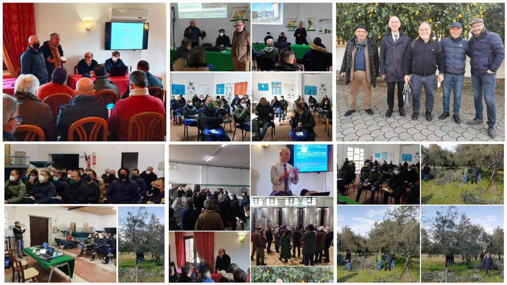 La prima fase si è materializzata con un corso teorico-pratico della durata di tre giorni, (16, 17 e 18 febbraio 2022) svolto tra Gioia Tauro, Locri e San Giorgio Morgeto in provincia di Reggio Calabria, sul tema: “Gestione della qualità nella filiera olivicola: utilizzo di sistemi razionali di potatura dell’olivo al fine di migliorare la qualità delle olive e dell’olio”. Il corso è stato ideato e organizzato in collaborazione con il CSD di Gioia Tauro (RC), nelle figure del Dr. Vincenzo Cilona e del Dr. Rosario Franco e gestito con la collaborazione del Prof. Raffaele Sacchi, dell’Università “Federico II” di Napoli e del Prof. Marco Poiana, dell’Università “Mediterranea” di Reggio Calabria. Il programma didattico è stato articolato in lezioni frontali, prove dimostrative in campo, visite guidate in frantoio e allo stabilimento di imbottigliamento, assaggio dell’olio. Sono stati affrontati i principali argomenti inerenti la gestione agronomica dell’oliveto, dalle cure colturali alla selezione della materia prima per la produzione di olive da mensa e di olio extra vergine di oliva di qualità. Particolare rilievo è stato dato: alla gestione dell’equilibrio vegeto-produttivo delle piante mediante potatura semplificata, alle tecniche di trasformazione delle olive, alla valutazione della qualità del prodotto finito nonchè all’importanza salutistica delle olive da mensa e dell’olio extra vergine di oliva nell’ambito della dieta mediterranea e di una sana ed equilibrata alimentazione.