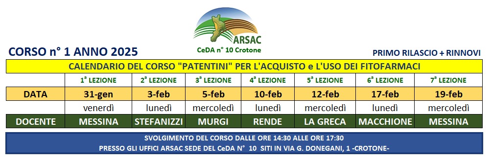 Continua anche per il 2025 l’attività di formazione, finalizzata al rilascio ed il rinnovo dell’abilitazione all’acquisto e utilizzo dei prodotti fitosanitari, per utilizzatori professionali, organizzata dall’Arsac.