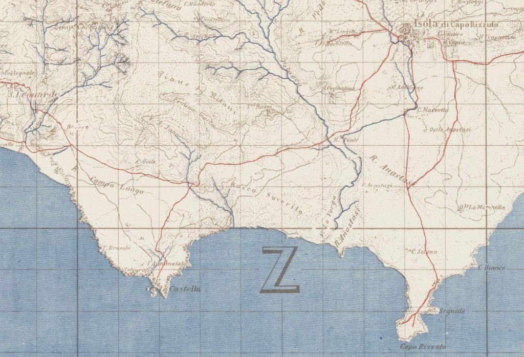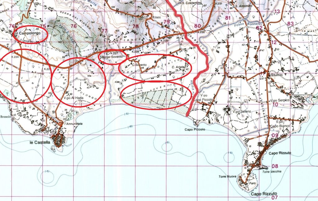[v] F. 243-IV “Isola di Capo Rizzuto”, della Carta d’Italia 1:50:000. U.S. Army 1943, copiata da una mappa italiana del 1896.