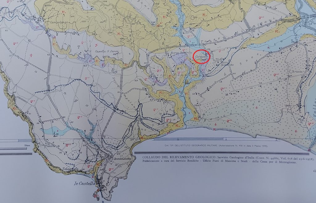 In evidenza il toponimo “Corazzo”. Particolare del Foglio 243 – IV N.O. della Carta d’Italia 1:25.000 dell’IGM.
