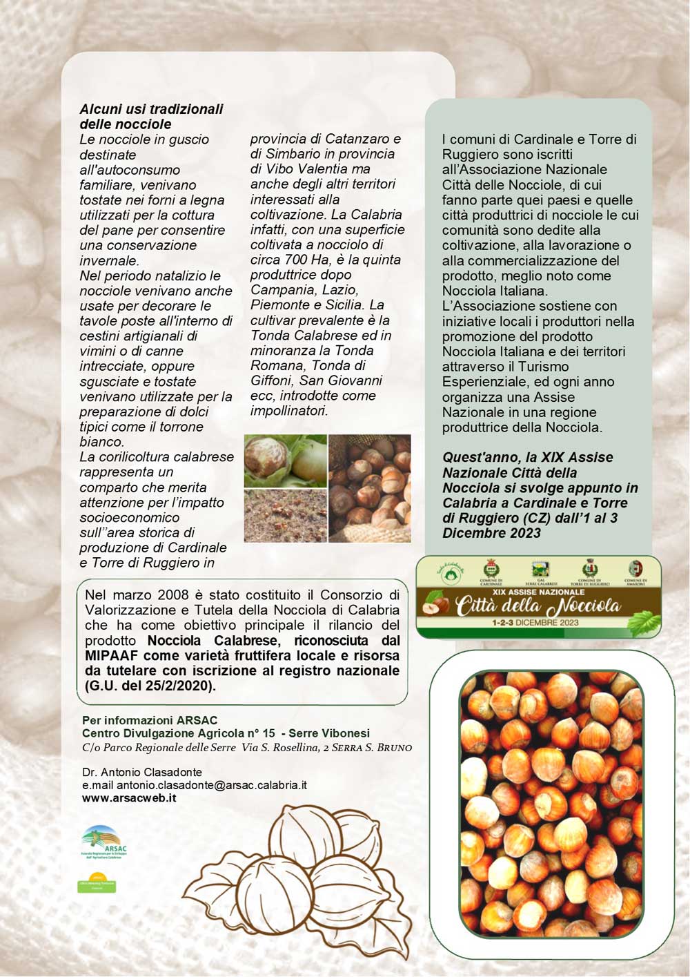 L’evento, organizzato dell’Associazione Nazionale “Città della Nocciola” in collaborazione con i Comuni di Cardinale e Torre Ruggiero, il consorzio Nocciola di Calabria, l’ATS Tonda di Calabria Bio, il GAL Serre Calbresi, l’Arsac tramite il Centro Divulgazione Agricola di Serra San Bruno ed il Parco Regionale delle Serre, si svolgerà nei giorni 1, 2 e 3 dicembre 2023.